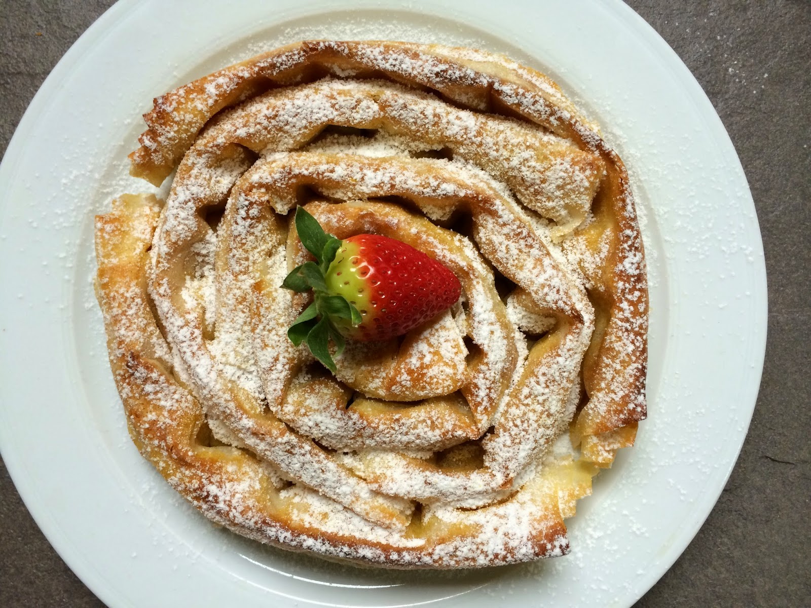 Pastel dulce parecido al strudel, relleno de pulpa de calabaza azucarada.