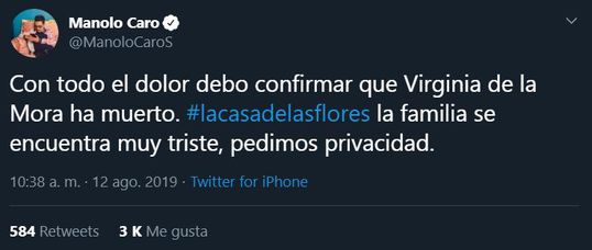 Luego de que un audio se filtrara en redes sociales, Manolo Caro, director de la exitosa serie ‘La Casa de las Flores’ confirmó la noticia: Virginia de la Mora murió.